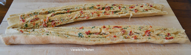 On baking just before I was getting ready to make the filling my family revolted. They did not want another sweet bread. In the last few weeks I have made a few sweet breads like the beautiful bread, the Swedish coffee bread and the cinnamon swirl bread. So I gave in and switched to a savory version of this bread.